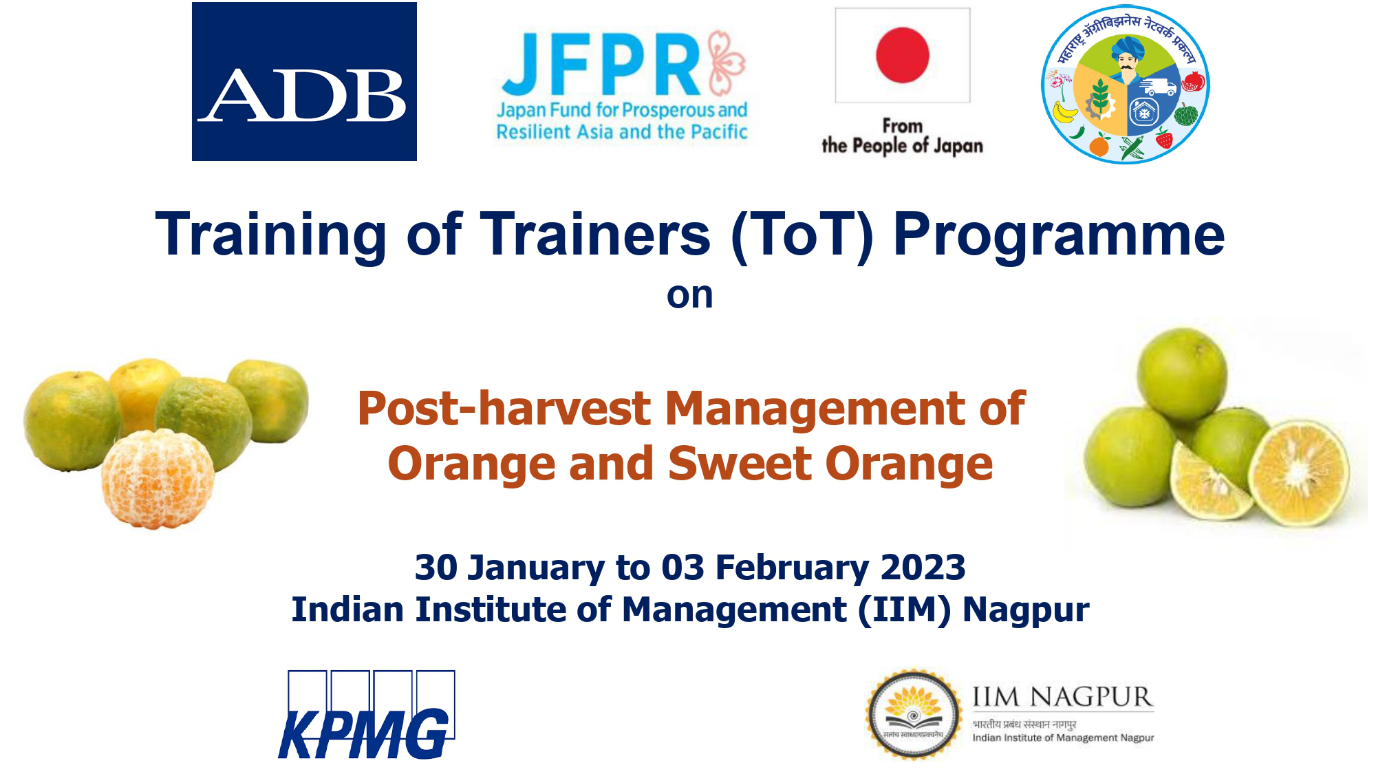 Under the Maharashtra Agribusiness Network (MAGNET) Project with KPMG, InFED recently organized a Training of Trainers program on Post Harvest Management of Orange and Sweet Orange at the prestigious Indian Institute of Management Nagpur. The 5-day program aimed to equip trainers with the necessary skills and knowledge to train orange and sweet orange cultivators on post-harvest management practices.