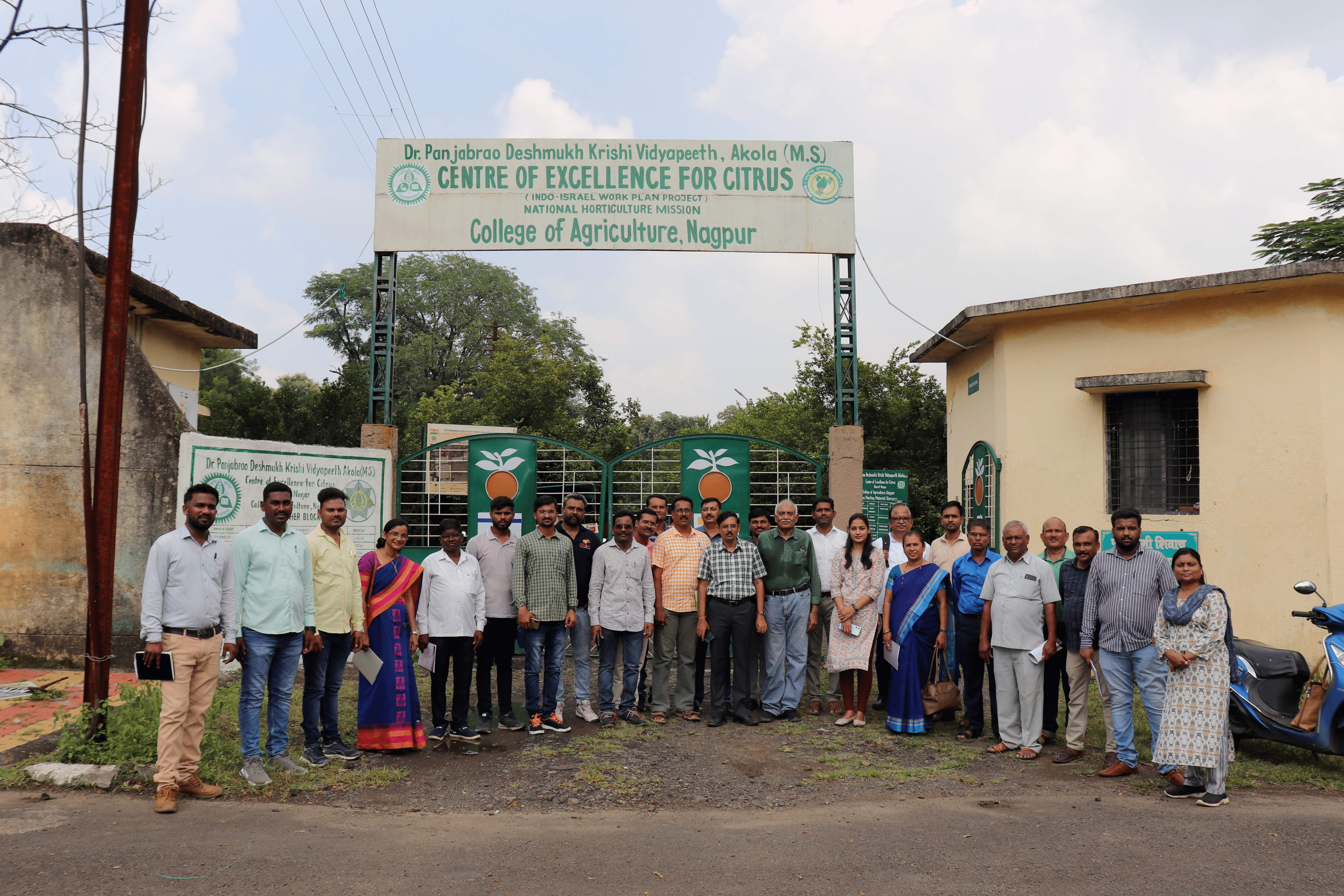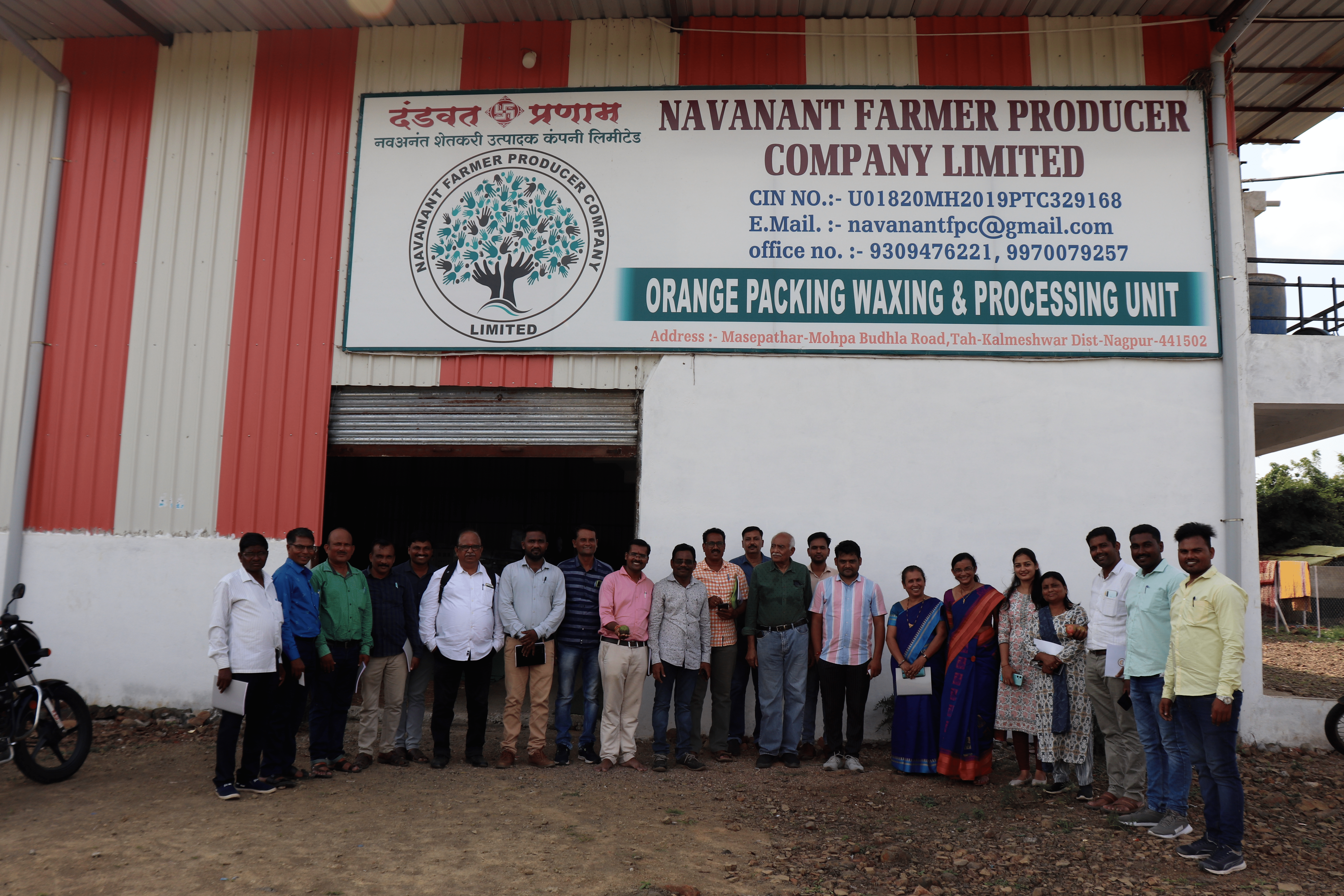 The participants were also taken on an exposure trip to Navanat FPC, Kalmeshwar and Centre of Excellence (CEC) for Citrus in Bharatnagar, Nagpur. The CEC for Citrus there was a highlight on the Indo-Israel Technique of High Density plantation and Techniques of Pruning to maintain the canopy using pruning machine. The FPC, Navanat visit emphasized on how to grow your business and deliver export quality oranges.
